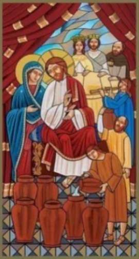 Jesus is journeying to Cana in Galilee, while John continues to baptize people in the Jordan, many of whom will follow Jesus and have the light of life through the regenerating baptismal water: men and women of every kind, the great and the small alike. Up to three thousand people were baptized on the first Pentecost Sunday (Acts 2:41). The second creation story begins in Chapter 2 of John’s Gospel with the marriage feast in Cana attended by the New Adam (Jesus) and his helpmate the New Eve (Mary) present there with him.