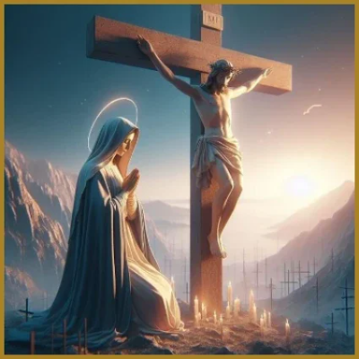 The Cross remains ever-present before her, a symbol of her enduring commitment to humanity’s salvation. In his final moments, Jesus affirms and ratifies Mary's maternal saving office when he entrusts her to the beloved Disciple, saying, "Woman, behold your son," and to the Disciple, "Behold your mother." This poignant moment highlights not only Mary’s role as the Mother of Jesus but also extends her motherhood to all believers, inviting them into a profound relationship with her as their spiritual mother. Through her intercession, she continues to guide and strengthen the faithful, nurturing their journey toward eternal life.